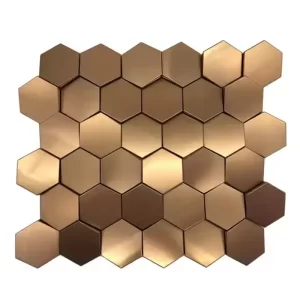 3D Hexagonal Gold Brushed Stainless Steel Peel and Stick Metal Mosaic Tile